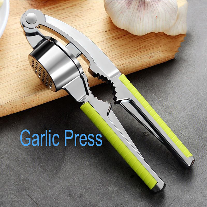 A stainless steel garlic press provides efficient and effortless garlic crushing, saving time and effort in food preparation.
